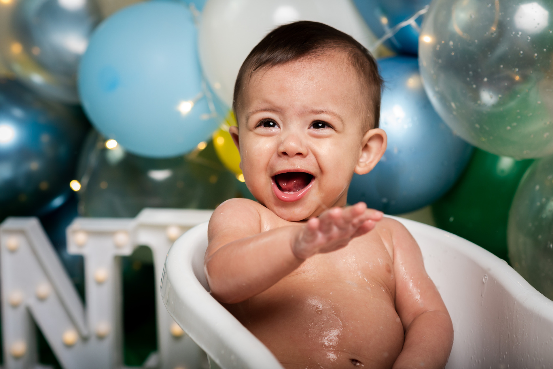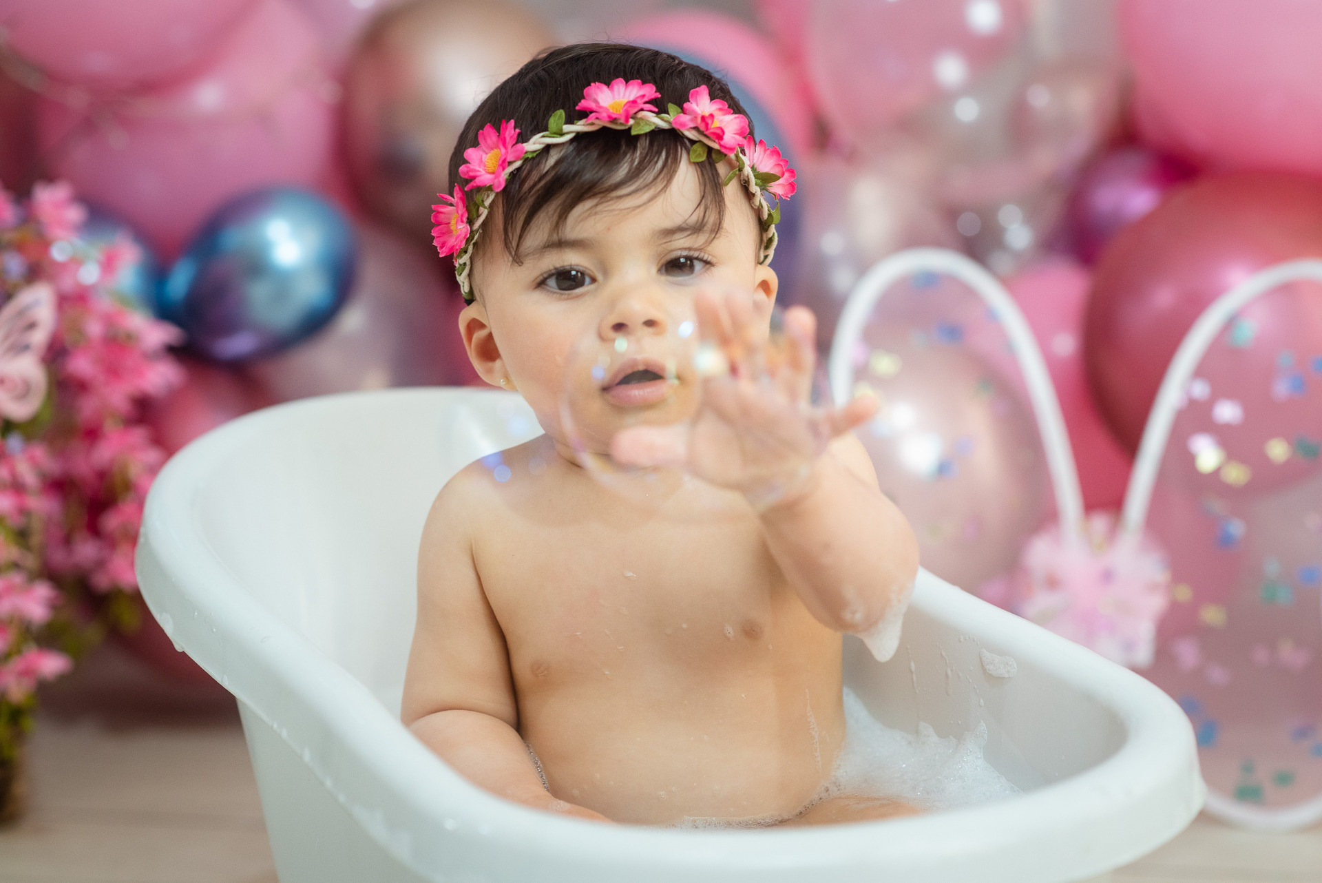 Inclui fotos com a família no início do ensaio e fotos do banho no final.